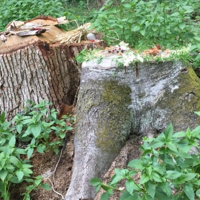 Wir treffen uns und laufen durch Feld und Wiese los, ein Reh springt vor uns auf. Beim Einfang zum Wald tanzen wir einen Dankestanz für die Elemente. Danach singen wir das Lied: “Meine Füsse fest auf Mutter Erde, segnen sie mit jedem Schritt. Meine Liebe spürt ihren Herzschlag, und mein eigenes Herz schlägt mit”. Wir laufen eine Weile in Stille, und tauschen dann unsere Dankbarkeit und auch die Schönheiten aus, die wir wahrnehmen im Tannholz. Angekommen bei den beiden zusammengewachsenen Baumstrünken, einer Eiche und einer Buche, spaziert jede für sich und nimmt den Schmerz wahr, den es in jeder von uns auslöst, nur noch die Baumstrünke der riesigen Eichen zu sehen. Die Teilnehmerinnen schmerzt es, dass das Bewusstsein des Getrenntseins des Menschen so stark sein kann, welches überhaupt so eine Tat möglich macht. Die mangelnde Wertschätzung des Lebendigen. Die Unachtsamkeit mit den Baumdevas. Das Eingreifen in das Universum Wald aus ökonomischen Gründen, und dies Schönzureden oder als “normal” zu relativieren.