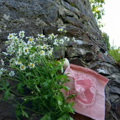 I am always drawn to Faughart. It is a high place with wonderful views. It felt right to visit and sit by Bridget’s Holy Well. I fixed the Radical Bird Flag onto the stone wall around the well and Roisin offered beautiful flowers. We shared our stories about Bridget and tidied around the well.