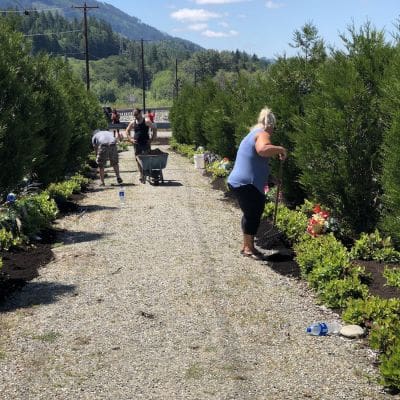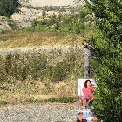 Signs on the steel gate leading to the memorial kind of say it all: “Grief is the price you pay for love,” “Earth has no sorrow that heaven can’t heal,” “Always in our hearts.” When I arrived today, June 16, 2018, on the other side of this entry were a half-dozen members of this small rural community that were among the many still recovering from a flooding and mudslide disaster. They were weeding, fertilizing and grooming the 43 evergreen trees planted there: one tree for each of the loved ones—friends and family—who lost their lives in the one square mile area around the memorial. All had died mid-morning of March 14, 2014 when a wall of earth and water came down the Stillaguamish River valley with the force of a 1/2 mile wide wall of 18 wheel semi-trucks roaring along at 60 miles an hour. They asked if I wanted to help. I had flown from Florida to be here in part to do up until that moment what was an unspecified ceremony as my part of the Global Earth Exchange. So I did.