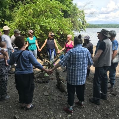 There were twelve of us who gathered in a small cove on the Hudson River, after following the Father C. Jorn Trail from the parking lot of the Falling Water Preserve in Saugerties, New York. Until he passed in 2002, Father Jorn was the chaplain of the Dominican Sisters’ retreat that sits above the trail. Over many years he carved this trail himself, using only a machete and a rake.