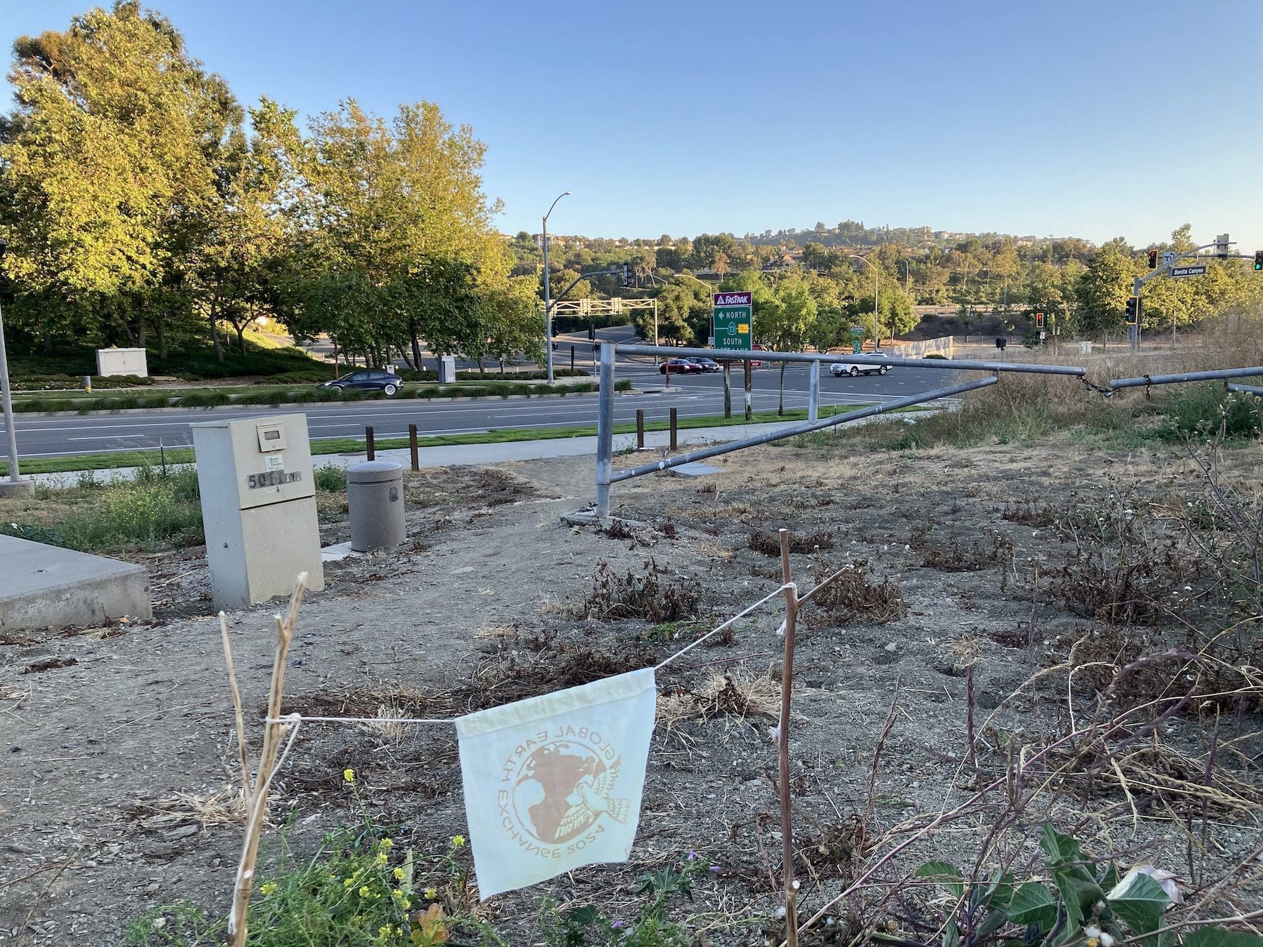 This is an undeveloped part of the University of California, Irvine. In the time we have lived here, we have watched large portions of its 1500 acres get terraformed, paved and built upon, and landscaped with non-native plants. This unloved back corner, near a small preserve and facing Bonita Canyon Road, is marked “green space” on campus maps but is mostly nasty invasives and a trail over a city water main. We owe our homes and livelihoods to this land and have never thanked it before this event.