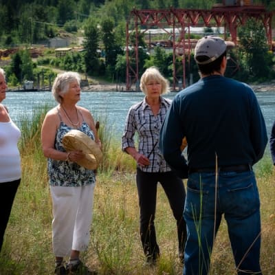 We chose this place because it is the 2nd big dam on the Columbia River system, which Has 72 dams altogether. We are considered the Lower Columbia headwaters, and we are on the western side of the upper drainage. We chose this place because it has changed what is downstream so radically, and is so in need of love and connection. It also changed what was there above the dam before it was flooded, and is a tragic story for most of the settlers, forests, original people, and fish who were flooded out, erasing 10,000 years of growth in a few months.