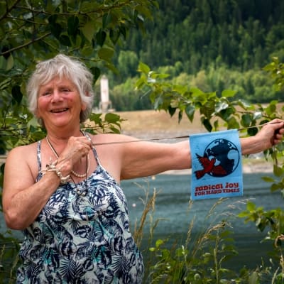 On the morning of June 22 thirteen people gathered at Portuguese Point, a fishing place near the Hugh Keenleyside Dam, on the Columbia River upstream from Castlegar, B.C. Our first activity was for each of us to familiarize ourself with the place by wandering and meandering, finding the objects who would like to be a part of an altar; the thing of beauty we intend to leave behind. The drum called us all back and we then formed a circle. Our intention was to smudge with sage, but the wind gusted and repeatedly blew out our matches. So, we used the wind to cleanse our minds and remind us to be in the moment. After calling in the directions, we sang “I vow to develop compassion in order to protect the lives of people, animals and plants” (by Betsy Rose) long enough to feel our energy as one with the earth beneath our feet and our surroundings. A meditative silence followed when people could look to the ridges and sky, watch the birds and clouds, and experience the reciprocity of the elements. We had a time of singing more songs and sharing our thoughts and feelings, creating a sense of community and commitment among us. After we opened the circle, we found a shady spot to share food and socialize. Most of us look forward to the next ceremony and have a strong sense that this practice can give us strength and optimism for the hard times we are moving through. That afternoon we had a beautiful rain with a thunderstorm that started many fires. It rained most of Sunday, so that by evening the smoke had been beaten to the ground and the evening sun shone in a clear blue sky! Shemmaho, June 24, 2019