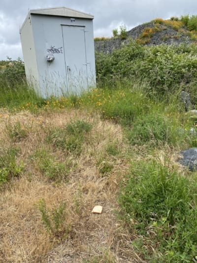 The Songhees and Esquimalt First Nations once lived on this land for millennium along with towering ancient mother trees. Now it is vacant uncared for land awaiting a condo development for settlers. I left a piece of bread as a tiny token of my grief and remorse for the actions of my ancestors. May it nourish the birds and earth now.