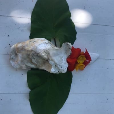 buttercups and morning glory, its nasturtiums, and its collected seashells from our Salish Sea, to