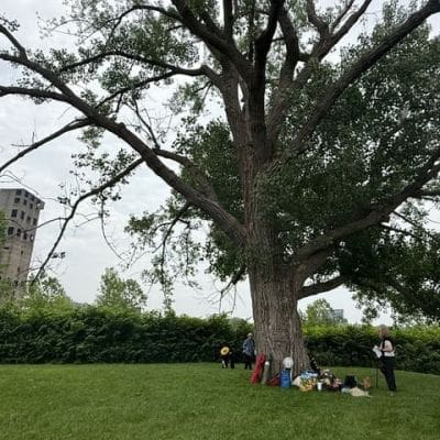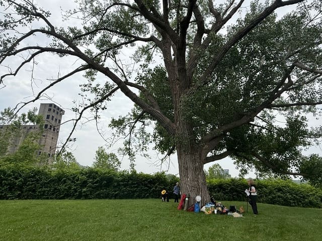 For our second year, our Global Earth Exchange brought together members of Lynda’s longstanding Active Hope group and family and friends inspired by Radical Joy’s ethos and practice, to observe the Summer Solstice with new eyes. Beginning with a quiet wander and poetry, remembrances and stories, we created our gift for the Buffalo River, engaged in a ritual of collective release and intention-setting, and celebrated our time together with a picnic in the meadow at Silo City.