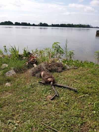 Poetry by Langston Hughes (Earth Song and Lament for Dark Peoples) and Anne Spencer (Requiem) was read. We gathered tide-stranded grasses, sticks, roots, and tree limbs, Spanish moss, oyster shells, cypress twigs, and a blue plastic bottle ring to construct our river bird of radical joy and spread it all on the grass along the river bank. Bit by bit our river bird became a great stork-like creature, with thick legs of tree limbs walking upriver, wings of moss and grass gracefully lifted behind, and a large head of roots, cypress twigs, blue-ringed eye, and oyster shell beak facing north. I will hold this river bird of radical joy in my heart and dreams as a prayer for how we might reconcile with one another and Mother Gaia in revolutionary acts of love, reconciliation, justice, and freedom.